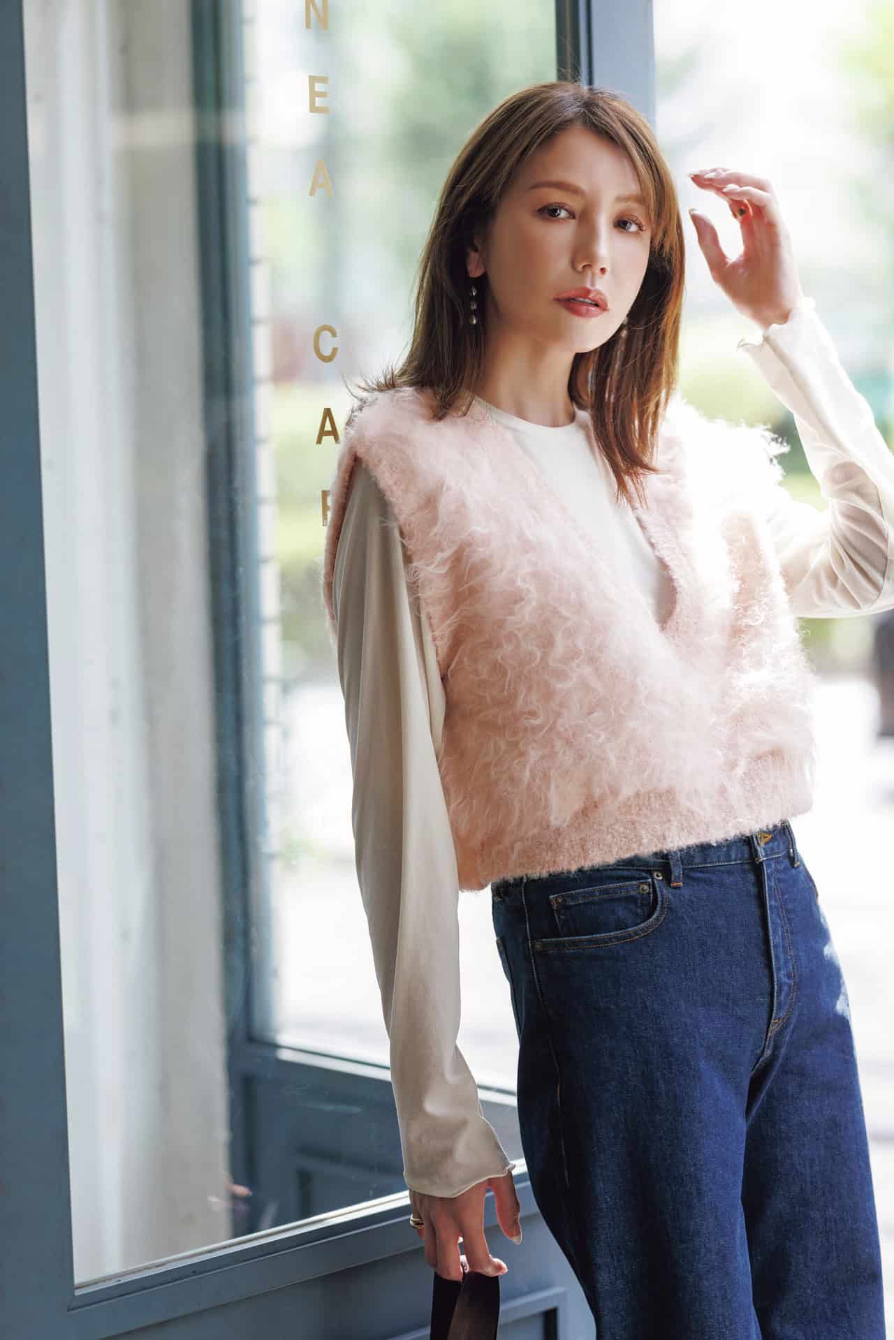 スニーカー¥36,300(ニューバランス/ニューバランスジャパンお客様相談室)ニット¥25,300(ebure/ebure GINZA SIX店)デニムジャケット¥39,600(HYKE/ボウルズ)パンツ¥30,800(ウィム ガゼット/ウィム ガゼット 玉川髙島屋S・C店)ベルト¥9,900(ユナイテッドアローズ/ユナイテッドアローズ 渋谷スクランブルスクエア店)キャップ¥4,400(ニューエラ)ピアス¥26,400(マリハ)ブレスレット¥58,300(ブランイリス/ブランイリス トーキョー)バッグ¥55,000(アヴァケーション/ノーベルバ)ソックス¥3,080(YAECA/YAECA APARTMENT STORE)