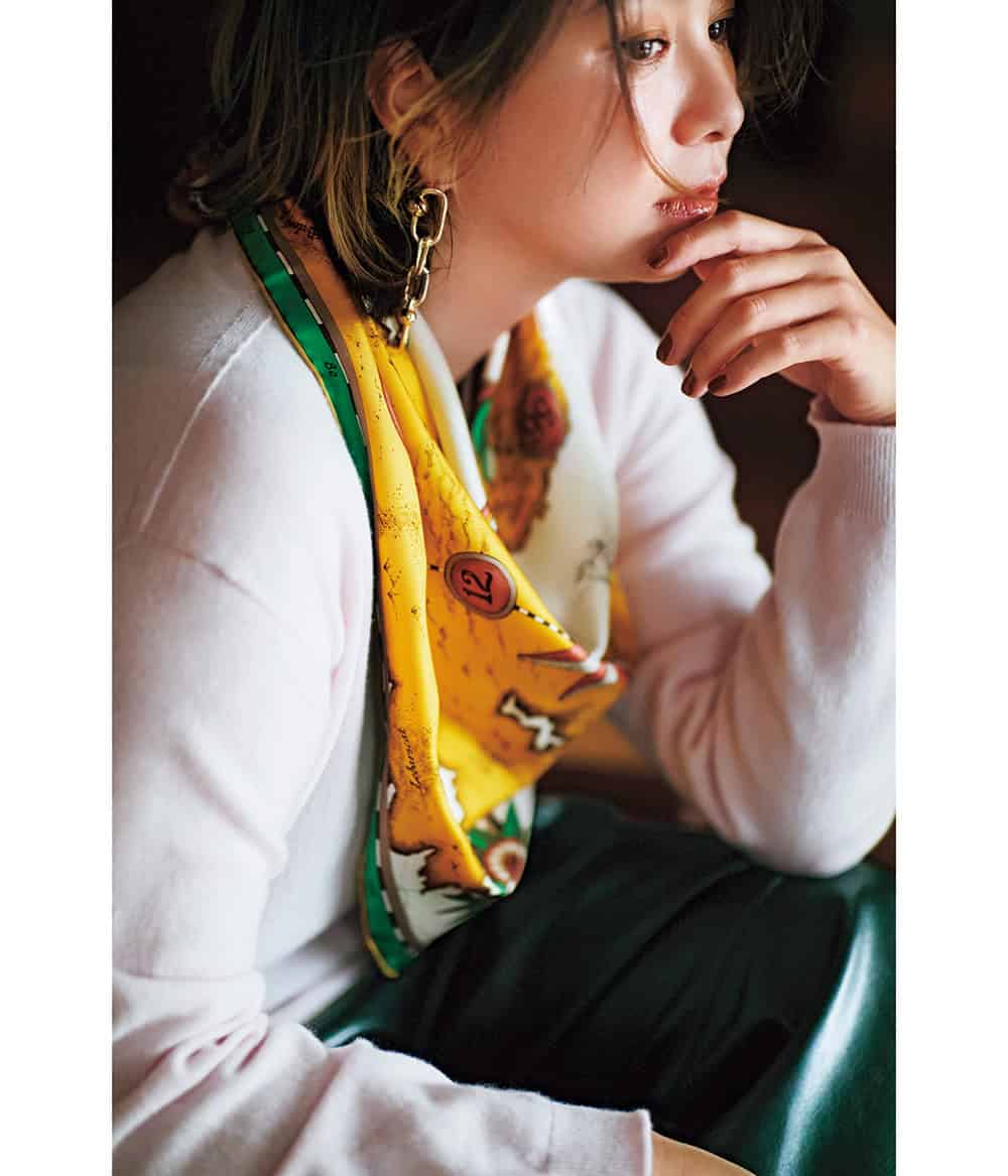 ニット¥19,800キャミソール¥9,900(ともにCASA FLINE/CASA FLINE表参道本店)イヤカフ¥2,970(ミミサンジュウサン/サンポークリエイト)バングル¥28,600(ウノアエレ ジャパン)リング¥7,150(ココシュニック)
