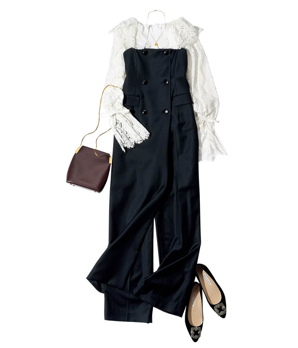 シャツ¥14,000(バナナ・リパブリック)イヤリング¥8,800(アビステ)ネックレス¥94,600(ココシュニック)リング¥20,900(イットアトリエ/フォーティーン ショールーム)