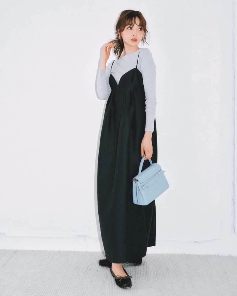 3.ロゴタンクトップ¥9,300(Rest & Recreation/ユー バイ スピック&スパン ルミネ池袋店)ストライプシャツセットアップ シャツ¥14,300(Mardi Mercredi/マルディメクルディジャパン)バッグ¥14,915(STAND OIL/MUSINSA JAPAN)靴¥66,000(ネブローニ)帽子¥12,980(POESIEDAME/SHOWROOM CHRMR)ネックレス¥4,950(Ungrid)リング¥18,700(ラ・スール)ベージュカーゴパンツ着回し