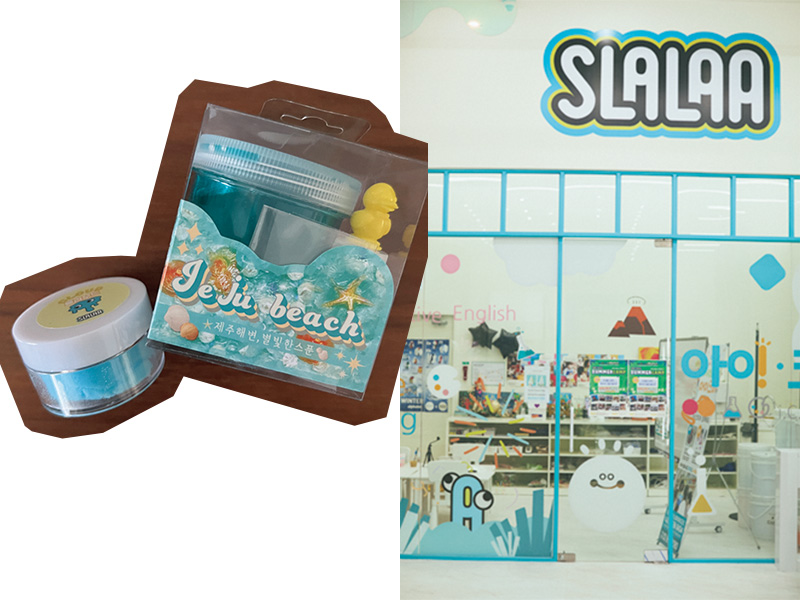 飛行機でぐっすり寝られるように搭乗前に体力発散タイム。2~3歳未満はスライムの代わりに安心のクレイで遊べるスララへ。お土産で買えるスライムで遊べるキットも魅力的! その隙にママはオリーブヤングで買物ラストスパート♡