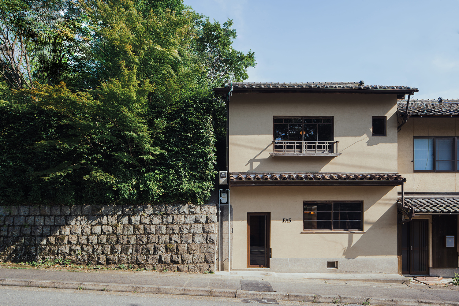 「FAS」の旗艦店となる京都東山店は、まちの喧騒から離れた一角に位置する、100年近い歴史をもつ一軒家をリノベーションしたもの。庭には日本の伝統工法である洗い出し式の床を採用。様々なアート作品を楽しみながら、一階のカフェでは「FAS」のブランドコンセプトである「発酵」や、「FAS」の故郷である京都の地で生み出される原料に由来したお菓子やお飲み物を提供しています。