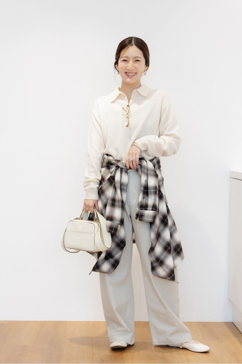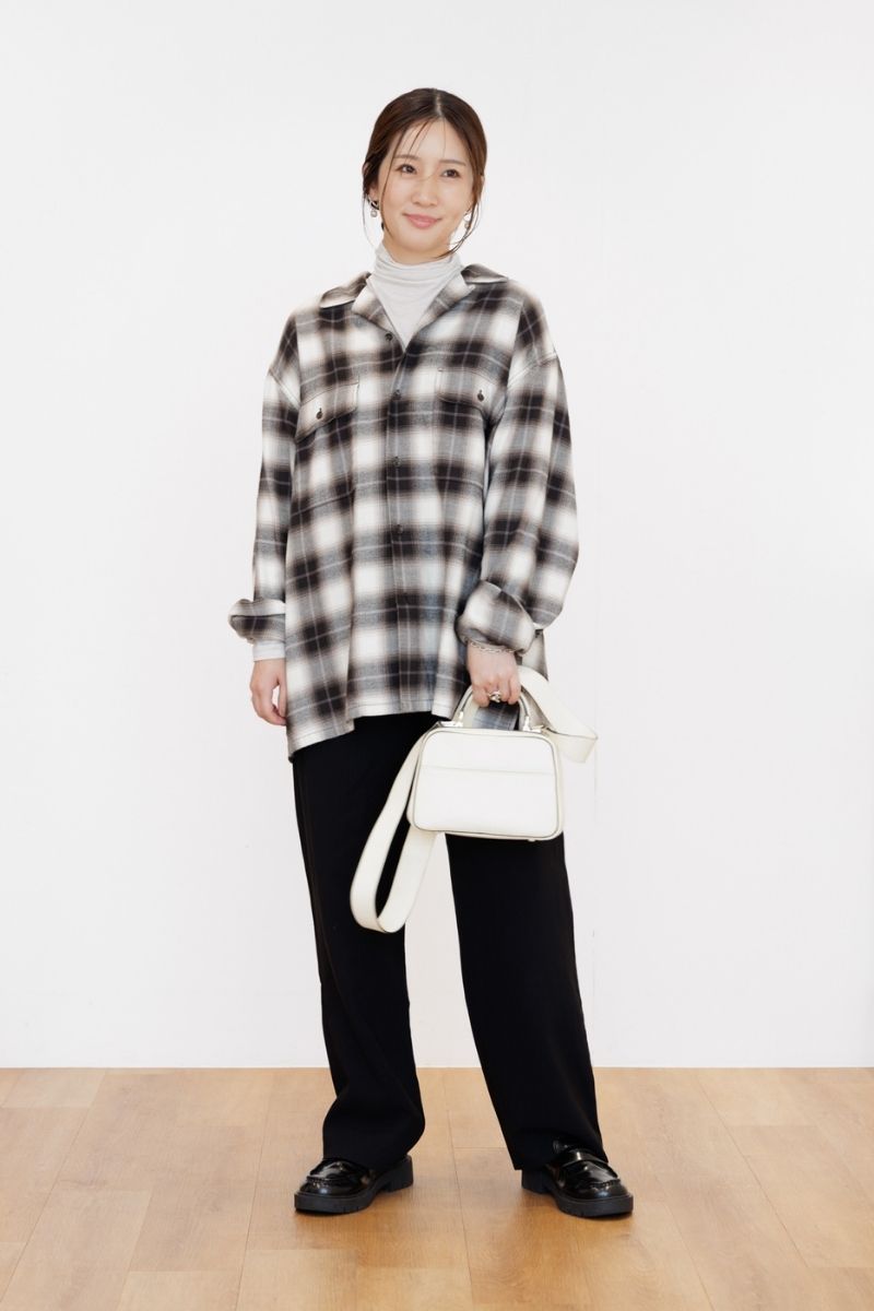 【写真1枚目】ブラッシュドコットンオーバーサイズシャツ¥3,990(ユニクロ アンド ジェイ ダブリュー アンダーソン/ユニクロ)極暖ヒートテックカシミヤブレンドタートルネックT¥2,290(ユニクロ)コンフィールタッチローファー¥3,990(ユニクロ:シー/ユニクロ)・その他本人私物【写真2枚目】ブラッシュドコットンオーバーサイズシャツ※¥3,990 ラムポロセーター¥3,990 カーブパンツ¥4,990(すべてユニクロ アンド ジェイ ダブリュー アンダーソン/ユニクロ)・その他本人私物