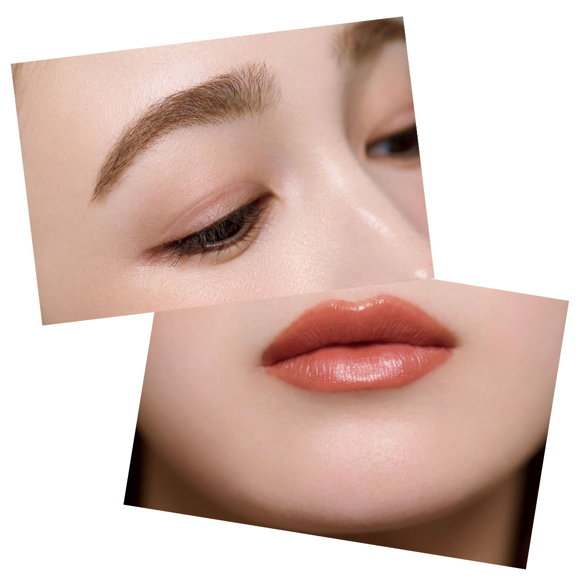 主役になるのは大人の色香を醸すブラウンローズのリキッドチーク。顔の内側に青みピンクのチークを重ねてピュアさを宿すことで顔色がぱっと明るくなるだけでなく、マットがベースのモカムースメイクに。立体感と奥行きが生まれます。