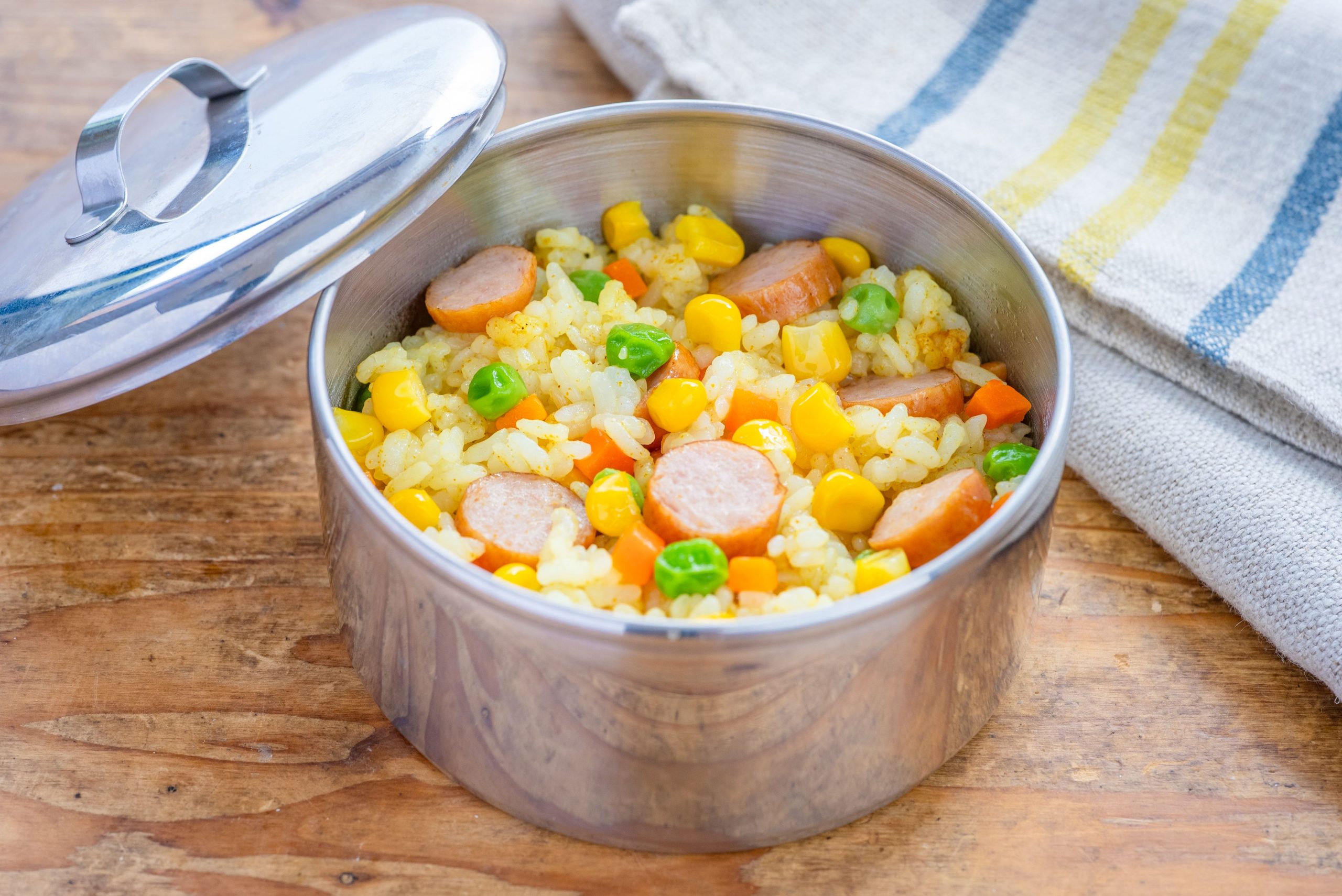 ぐっち夫婦 レンジでガツンと一品完結「カレーピラフ弁当」