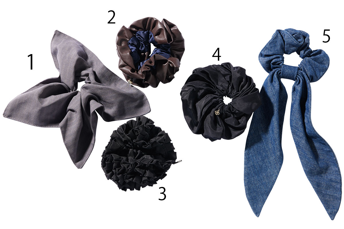 4.シルクタフタのボリュームシュシュは、結んだところにかぶせるだけで即席甘モード。[直径9cm]¥19,800(コレットマルーフ/ザ ヘア バー トウキョウ)