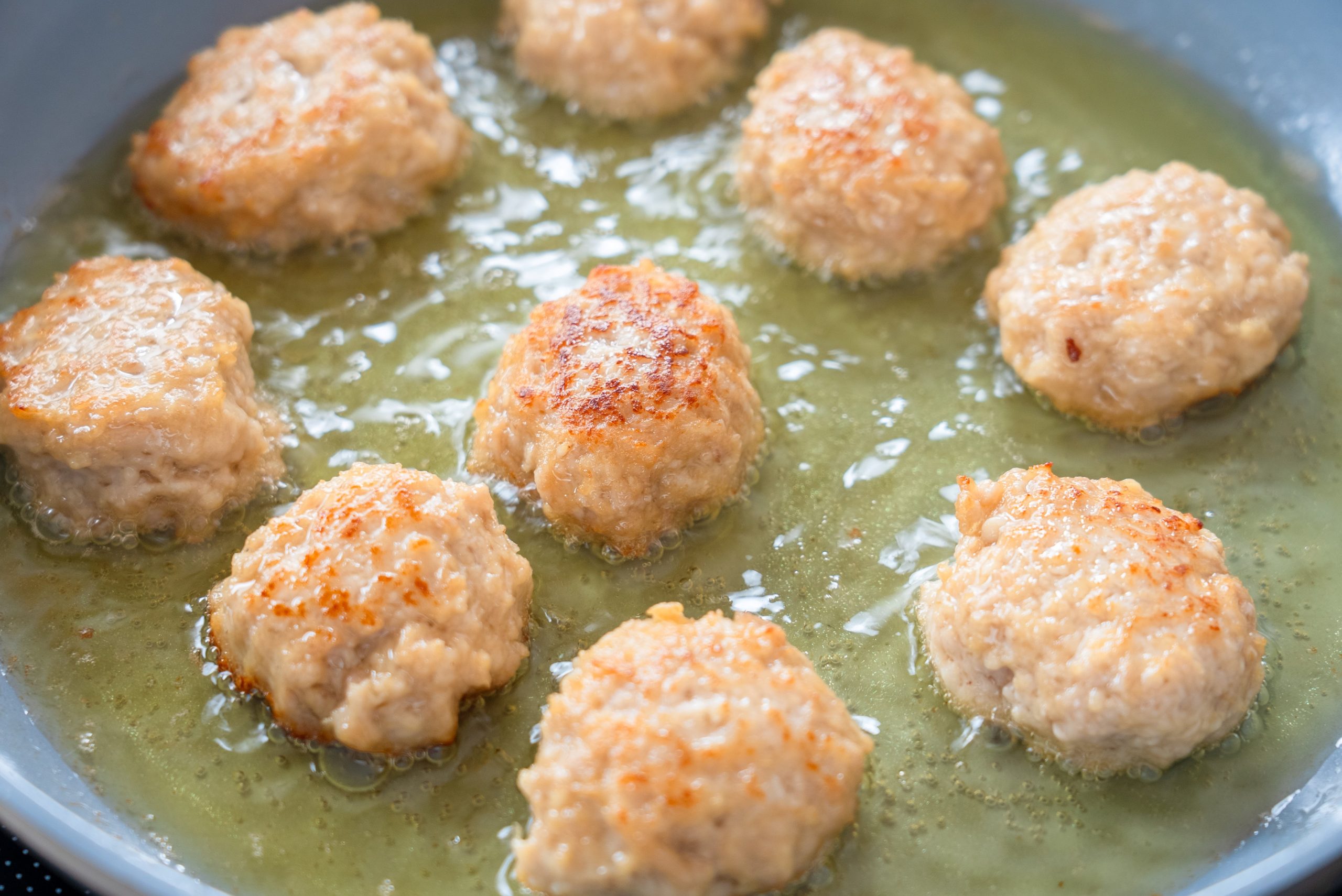 ③フライパンに油を1cmほど入れて中火で熱し、②をスプーンで一口大にすくって入れ、両面こんがり揚げる。