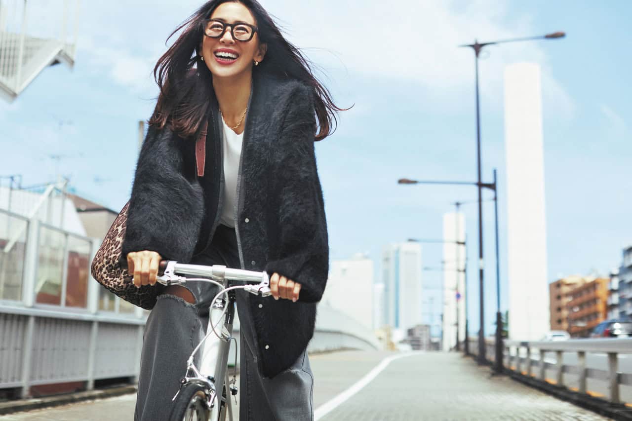 カーディガン¥36,300(プランクプロジェクト/プランクプロジェクト 青山店)タンクトップ¥19,800(デ・プレ)デニム¥10,450(ミラ オーウェン/ミラ オーウェン ルミネ新宿2店)バッグ¥58,300(アバケーション)ピアス¥31,900ネックレス¥44,000(ともにオクチジュエリー/フラッパーズ)眼鏡¥50,600(パイン/フォレストパイン・デザインラボ)