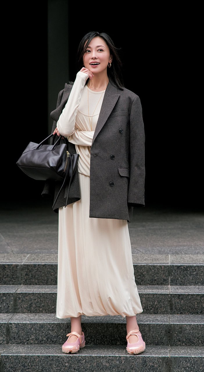 ‟軽やかピンク”がジャケットコーデに優しい甘さを