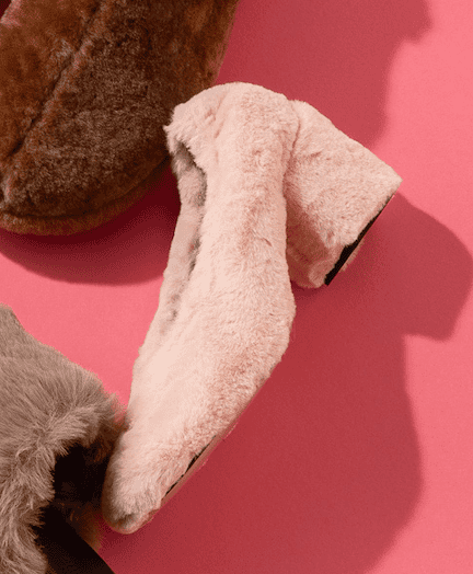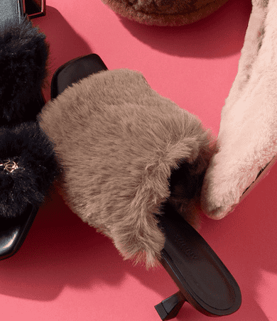 まろやかなベージュのファー×ヒールが女っぽさを底上げ。
