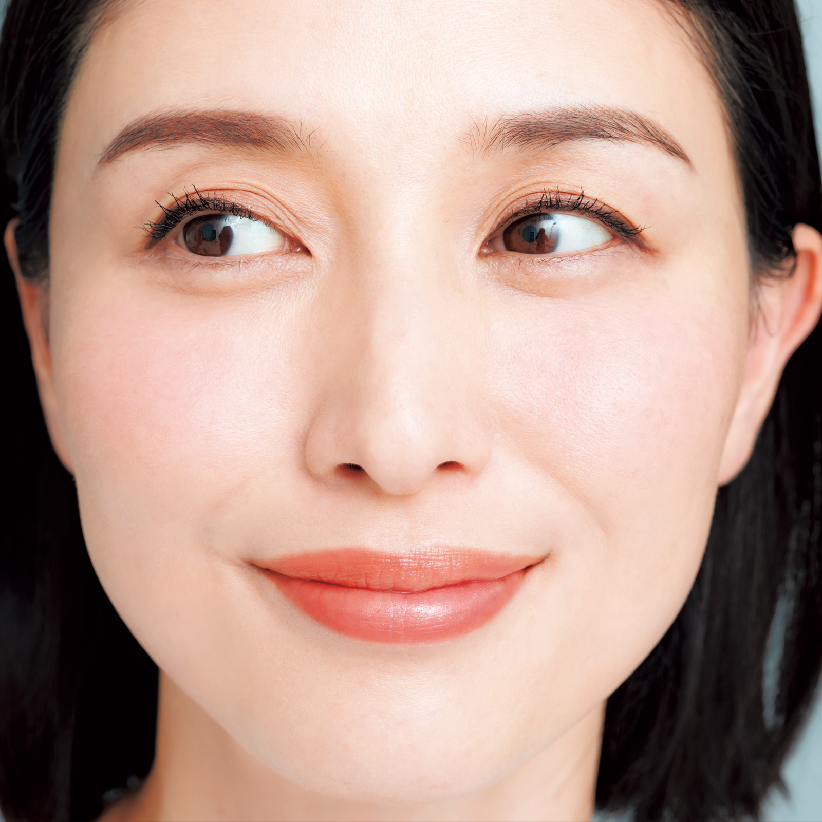 頰の血色感は肌を持ち上げて見せる効果があり大人ほど不可欠。青みピンクがくすみ肌に有効です。頰の高い位置にクマと重ねるように塗布。練りとパウダーのWチークが◎。