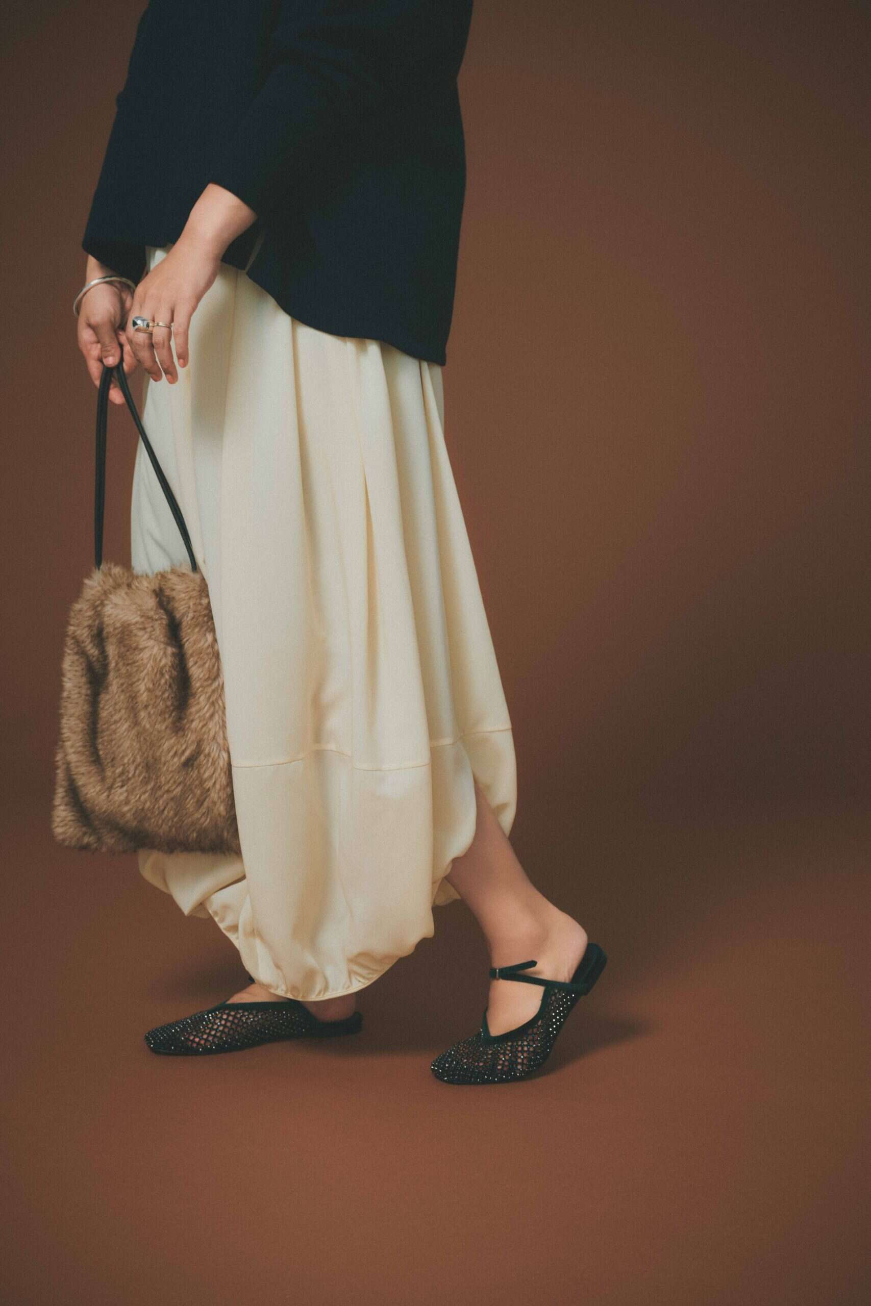 スカート¥41,800(ルル・ウィルビー/アルアバイル)ニット¥42,900(エイチ ビューティ&ユース)バッグ¥42,900(メアリオルターナ/デ・プレ)シューズ¥97,900(ペリーコ/アマン)ピアス¥56,100リング¥224,400(ともにココシュニック)