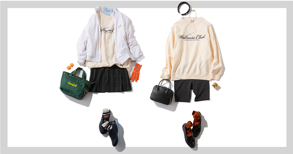 ベージュ系ワントーンなら、スウェットもやわらかく上品に。大ぶりアクセで視線を上へ集めれば、ゆるパンツもすっきり見えします。腰まわりを隠すシャツのレイヤードで、体型カバーと奥行きまでしっかり確保。