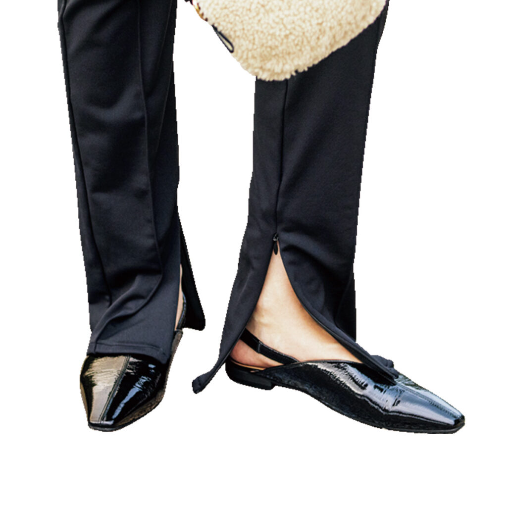 ジャコット¥75,900(ラム・シェ)トップス¥28,600(ザ シンゾーン╱シンゾーン ルミネ有楽町店)レギンス¥15,400(コードエー╱ワールド プレスインフォメーション)バッグ¥34,650(テッセンクリエーション)パンプス¥23,100(ATELIER BRUGGE╱アトリエブルージュ)イヤリング¥13,200(IRIS47╱フーブス)
