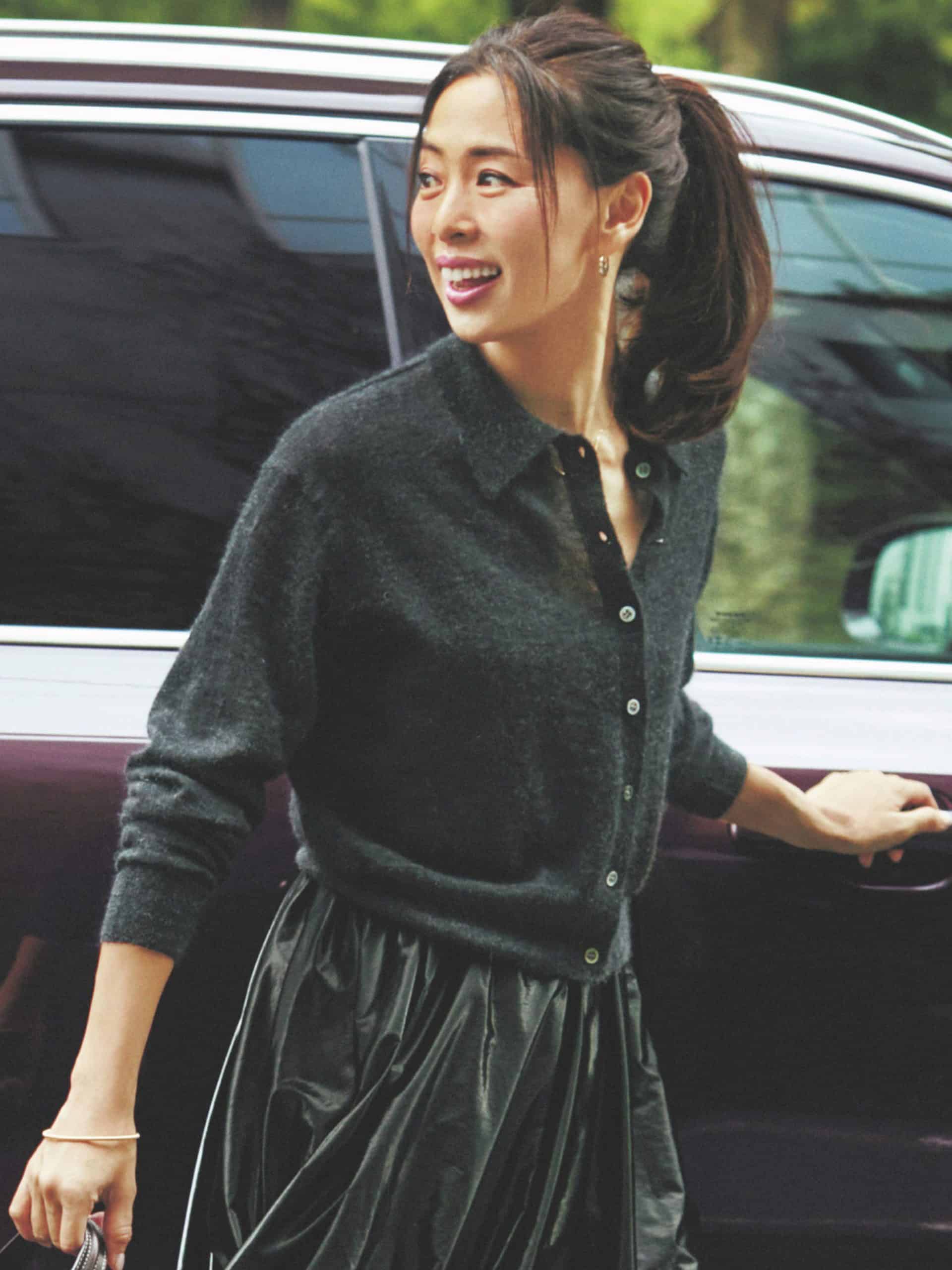 コンサバシルエットもキュートなパールが高揚感を呼ぶ