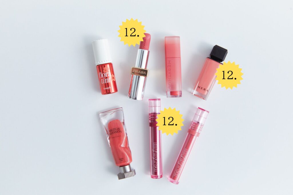 「lilybyred グラッシーレイヤー フィクシング ティント 12」は薄づきピンク。運動するときなど、ナチュラルなメークに合わせます。
