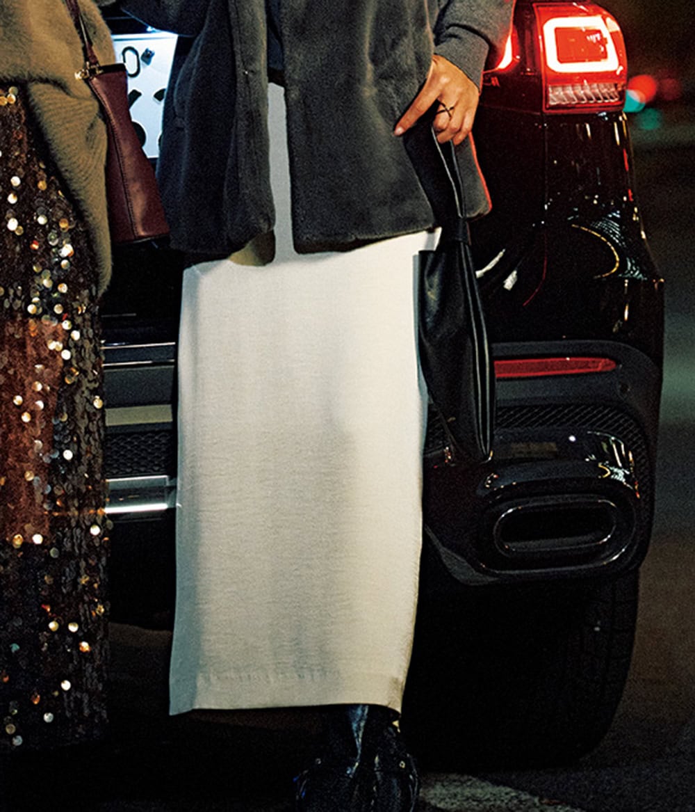 慌ただしい日々を抜け出して迎える、大人だけの忘年会。「自転車をこげないから」と封印していた「ロングタイトスカート」も、今夜こそ解禁!マキシ丈の女っぽさにゆるっとしたトップスを合わせるだけで、今どきの空気感に。