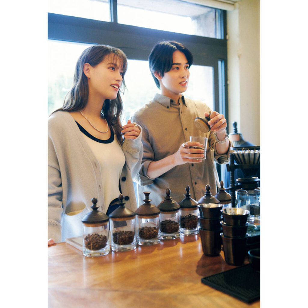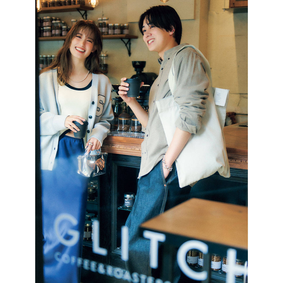 [男性]シャツ¥13,000(バナナ・リパブリック)パンツ¥53,900(トラディショナル ウェザーウェア/トラディショナル ウェザーウェア 渋谷店)バッグ¥4,400(remer/remer store)イヤカフ¥12,100ブレスレット¥4,400〈ともにライオンハート〉リング¥55,000〈シンゴクズノ〉(すべてSian PR)