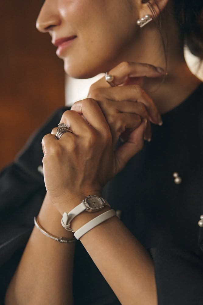 キャッチーな丸みを帯びたシルエットをメインに女性らしいラインをアピール。雪のように甘さたっぷりなカラーとのミックスで今らしいガーリーな装いが完成します。真っ白な甘ワンピの日は、硬めなバッグをチョイスしてバランスを。