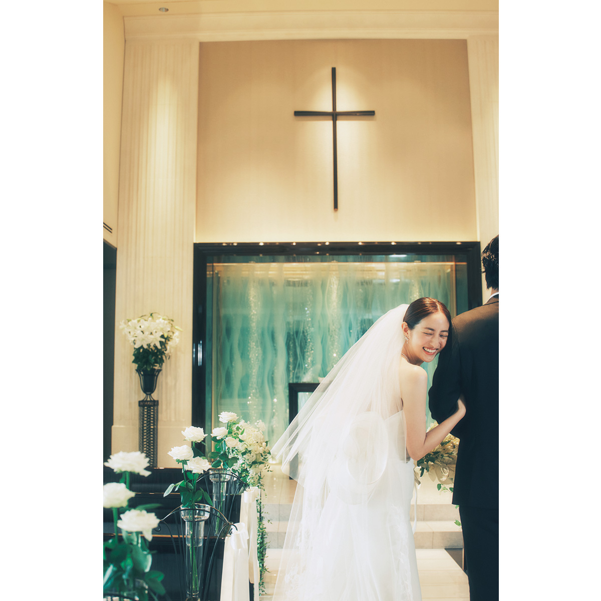 会場は「ザ・リッツ・カールトン東京」。憧れのホテルだったので見学に行ったのですが、その時から素晴らしいホスピタリティに感動して。「ここで結婚式をしよう」と即決でした。ウェディング専用のエレベーターや動線に工夫があり、他の披露宴とバッティングすることがないのもよかったし、会場に到着した瞬間から、私たちだけでなくゲストのみなさんにも非日常の世界観を楽しんでもらえると感じました。そんな素晴らしい会場に巡り会えたことが、思い出に残る結婚式作りの第一歩だったと思います。
