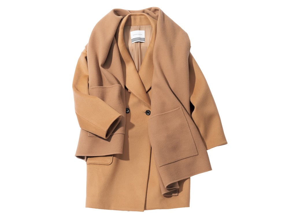 ケープ¥33,000(ウィム ガゼット/ウィム ガゼット ルミネ新宿店)コート¥198,000(ボーダーズ アット バルコニー)