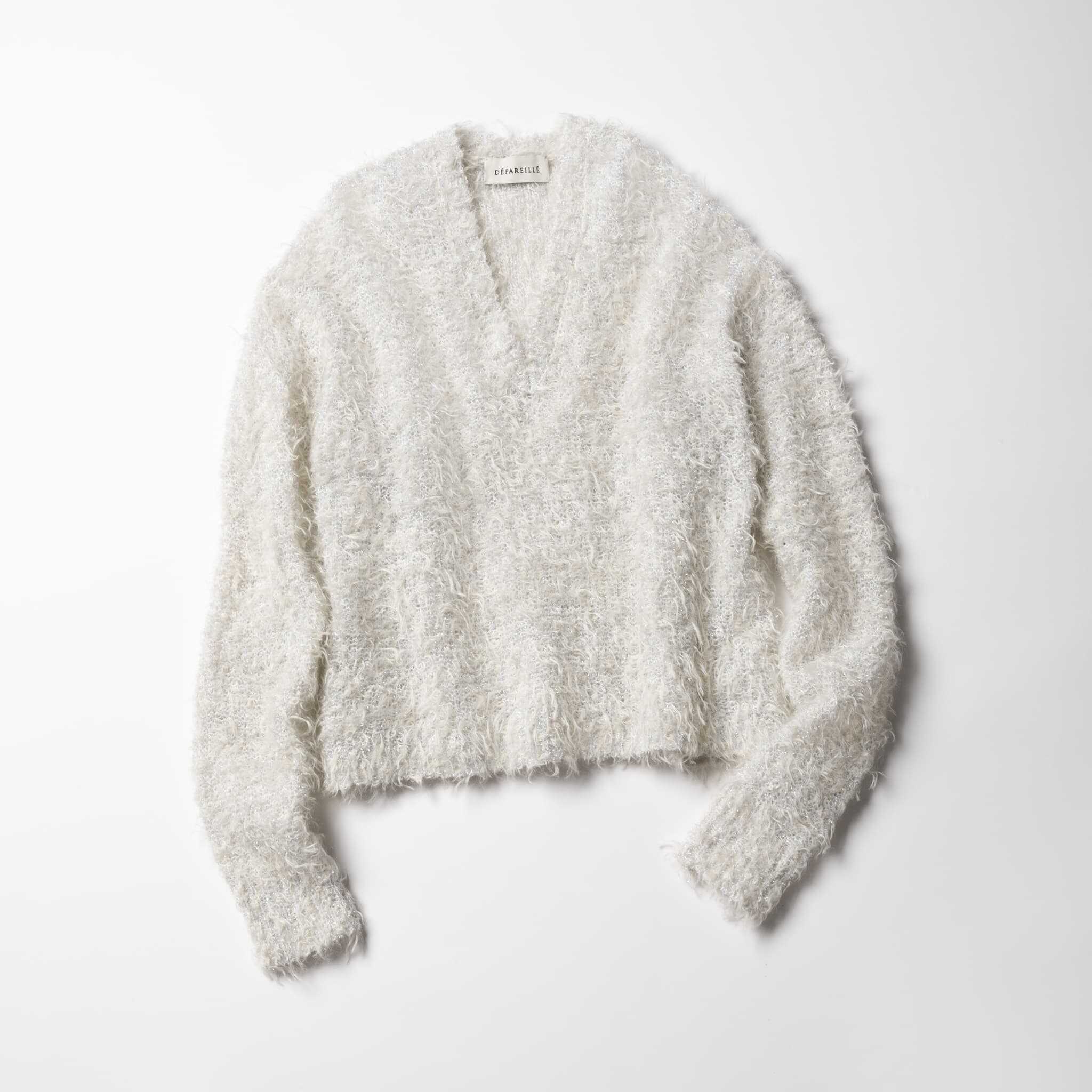 ふわふわシャギーがパーティコーデを盛り上げる白ニット