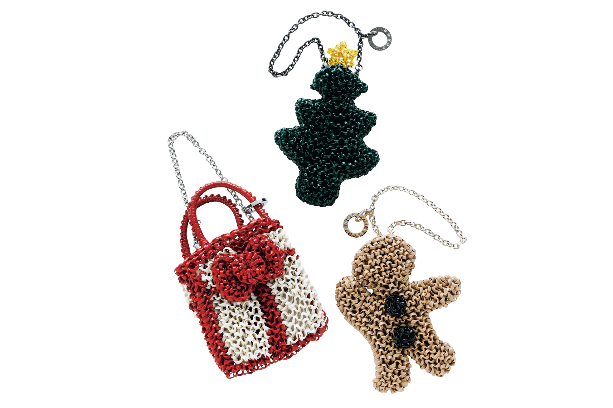 ギフトボックス、クリスマスツリー、ジンジャーブレッドマンとホリデー感満載のシルエットが可愛すぎる♡ バッグにつけて、冬の装いを盛り上げて。バッグチャーム各¥28,600/すべてアンテプリマ/ワイヤーバッグ(アンテプリマジャパン)