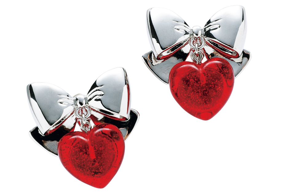 遊び心溢れるキッチュなデザイン。エッジィなシルバーと甘い赤ハートのコントラストが絶妙なバランス。イヤリング¥5,390/リキュエム