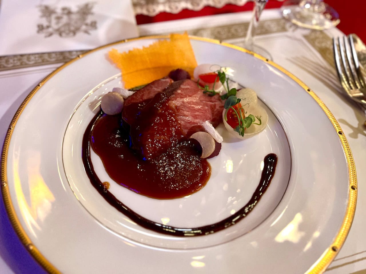 晩餐会で提供される食事は、前菜・メイン・デザートで構成されたコース料理となります。