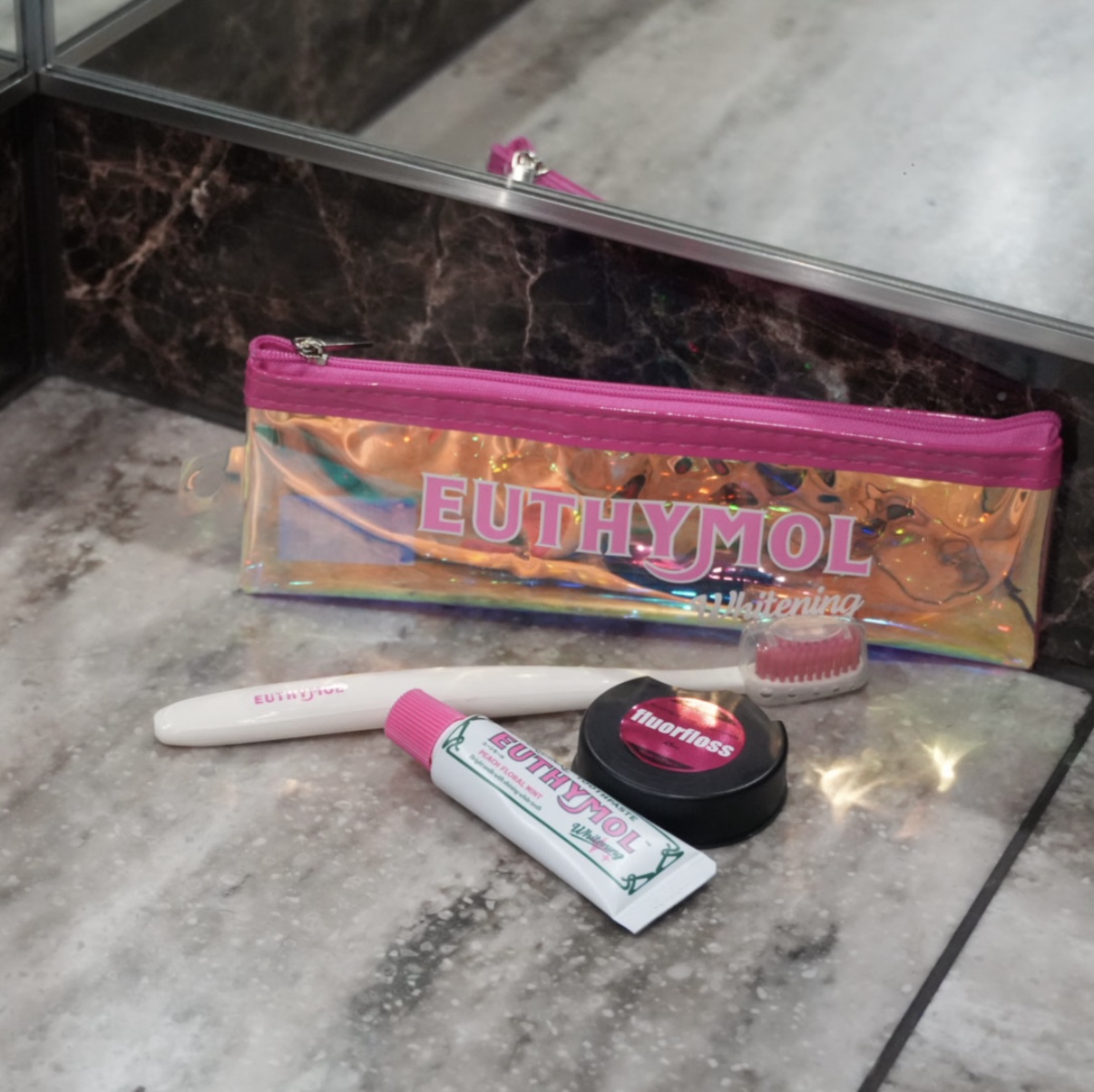 左から「ユーシモール トラベルセットホワイトピンク」¥987/EUTHYMOL、「フロアフロス」(45m)¥726/オーラルケア