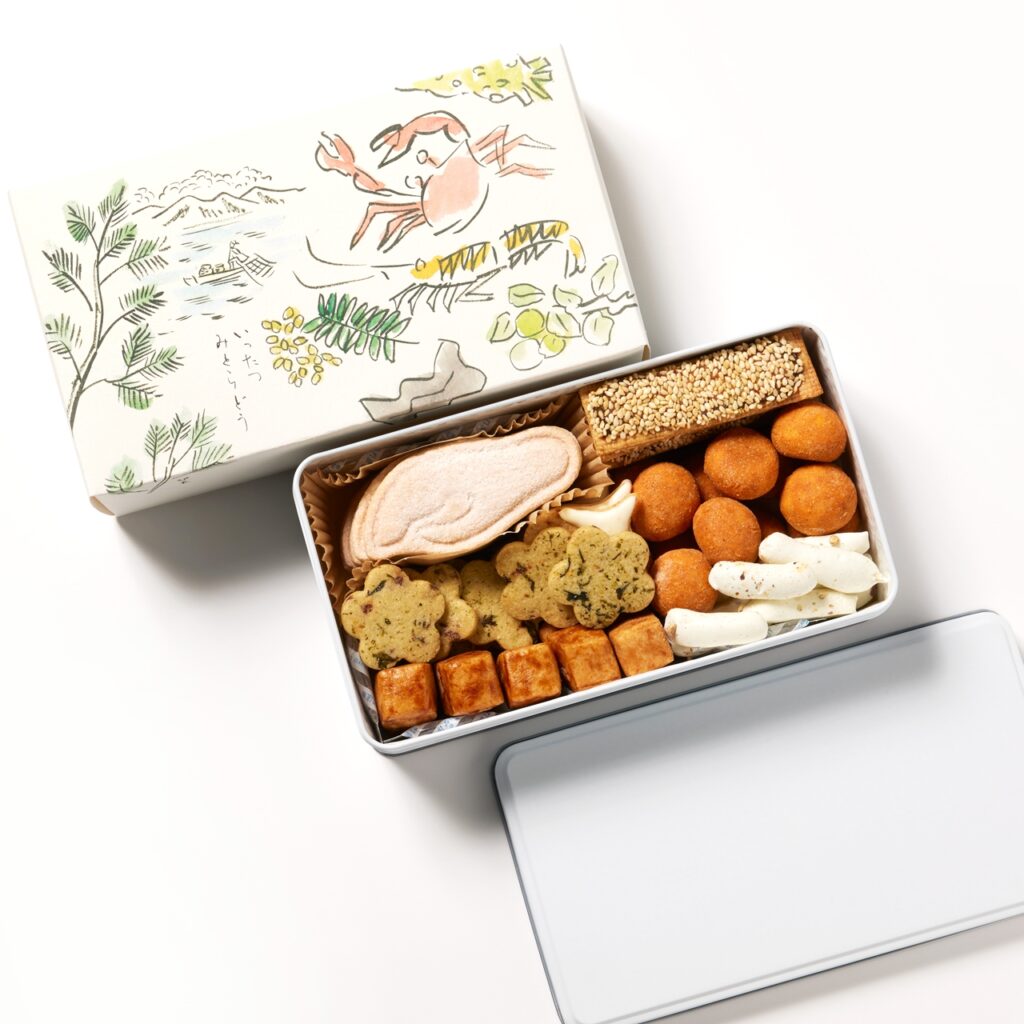 「ミシュラン三ツ星の名店『神楽坂 石かわ』が手掛けるクッキー缶は、入手困難なことでも知られる特別な一品。お世話になった方へのお礼や取材時の手土産として選ぶことが多いです。最大の魅力は、わさびのメレンゲや蟹チーズなど、食感も風味も新鮮で、和食をベースにしているからこそ幅広い方に喜ばれるのが魅力。甘いものの好みが分からない相手にも贈りやすい点も心強いです。手土産の名店として知られる『いったつみとらどう』とクッキー缶という意外性のある組み合わせも印象的。料理人がこだわり抜いた素材の味や香りが、ひと口ごとに際立ちます」(増田さん)