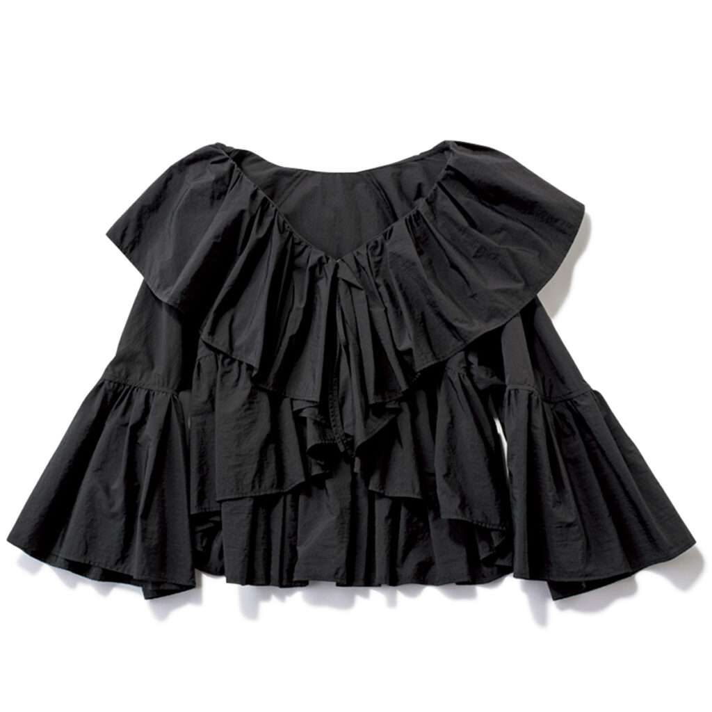 袖にはゴムが入っているので手元の汚れも心配なし。ゆったりトップスなら満腹感も気にならない♡ 〆ラーメンまでいけちゃいます!トップス¥22,990(ユナイテッドアローズ/ユナイテッドアローズ 渋谷スクランブルスクエア店)パンツ¥17,600(カリテ/カリテ スケープ コレド日本橋店)バッグ¥74,800(FURLA/フルラ ジャパン)シューズ¥16,500(ダイアナ/ダイアナ 銀座本店)イヤリング¥1,760(アネモネ/サンポークリエイト)ネックレス¥137,500(ヴァンドーム青山/ヴァンドーム青山 プルミエール 伊勢丹新宿店)