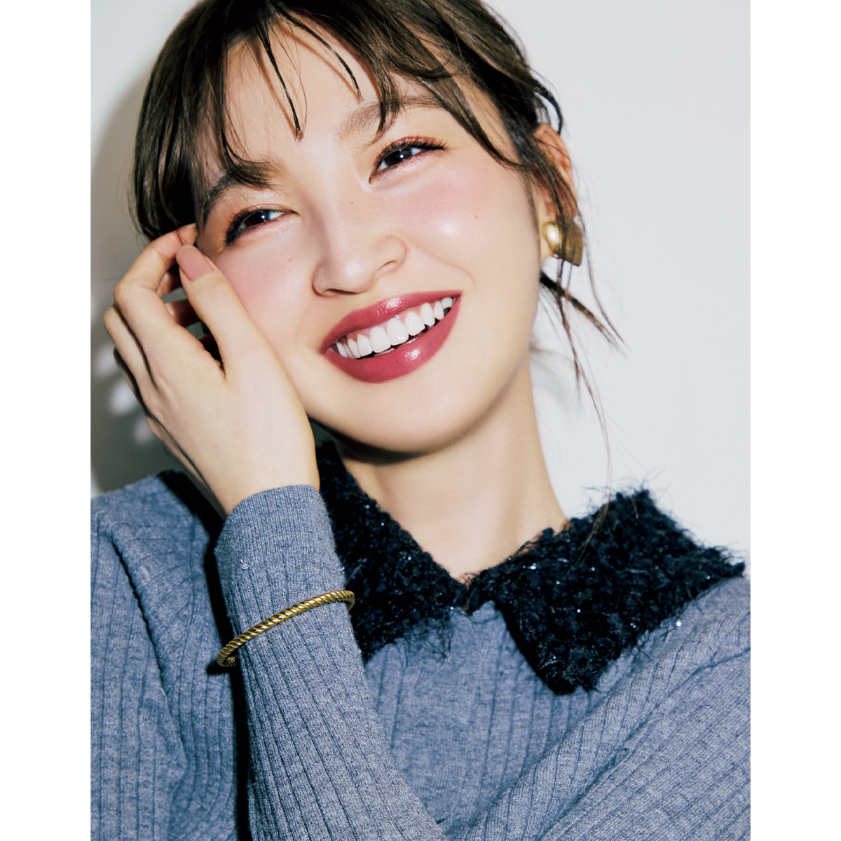 【衣装クレジット】ニット¥19,800(カデュネ)イヤリング¥2,090(アネモネ/サンポークリエイト)バングル¥14,520(チビ・ジュエルズ/チビジュエルズ・ジャパン)