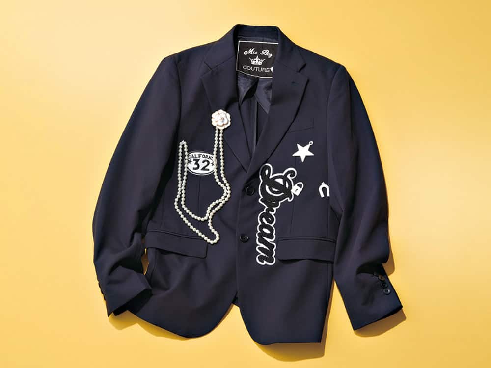 細身のドレスジャケットにアップリケやパールを仕込んだ手の込んだ一着。ジャケット(ミア バッグ クチュール/ソフィット 新宿店)