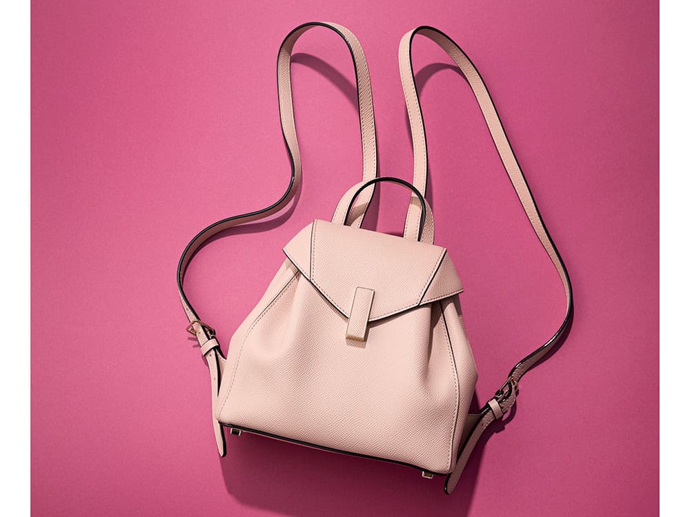 ミニサイズ。ピンクとシックな金具が魅力的です。バッグ「イジィデ バッグパック ミニ」〈H21×W20×D8.5cm〉(ヴァレクストラ/ヴァレクストラ ジャパン)