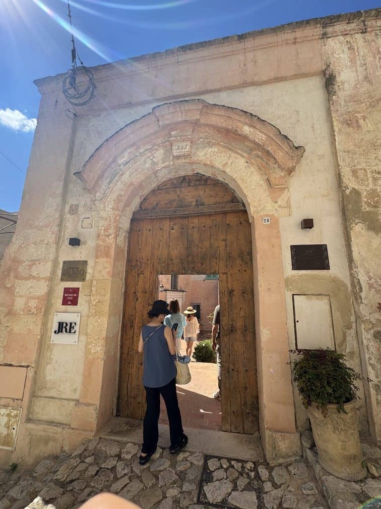 サン・マルツァーノのExportManagerを務めるルカさんが、レストラン「Dimora Ulmo」へ案内してくれました。場所はマテーラ旧市街の谷あいに広がる歴史的地区「サッシ(Sassi)」の中。サッシを見渡すテラス席もあり(夏季)、ロケーションの美しさも魅力。
