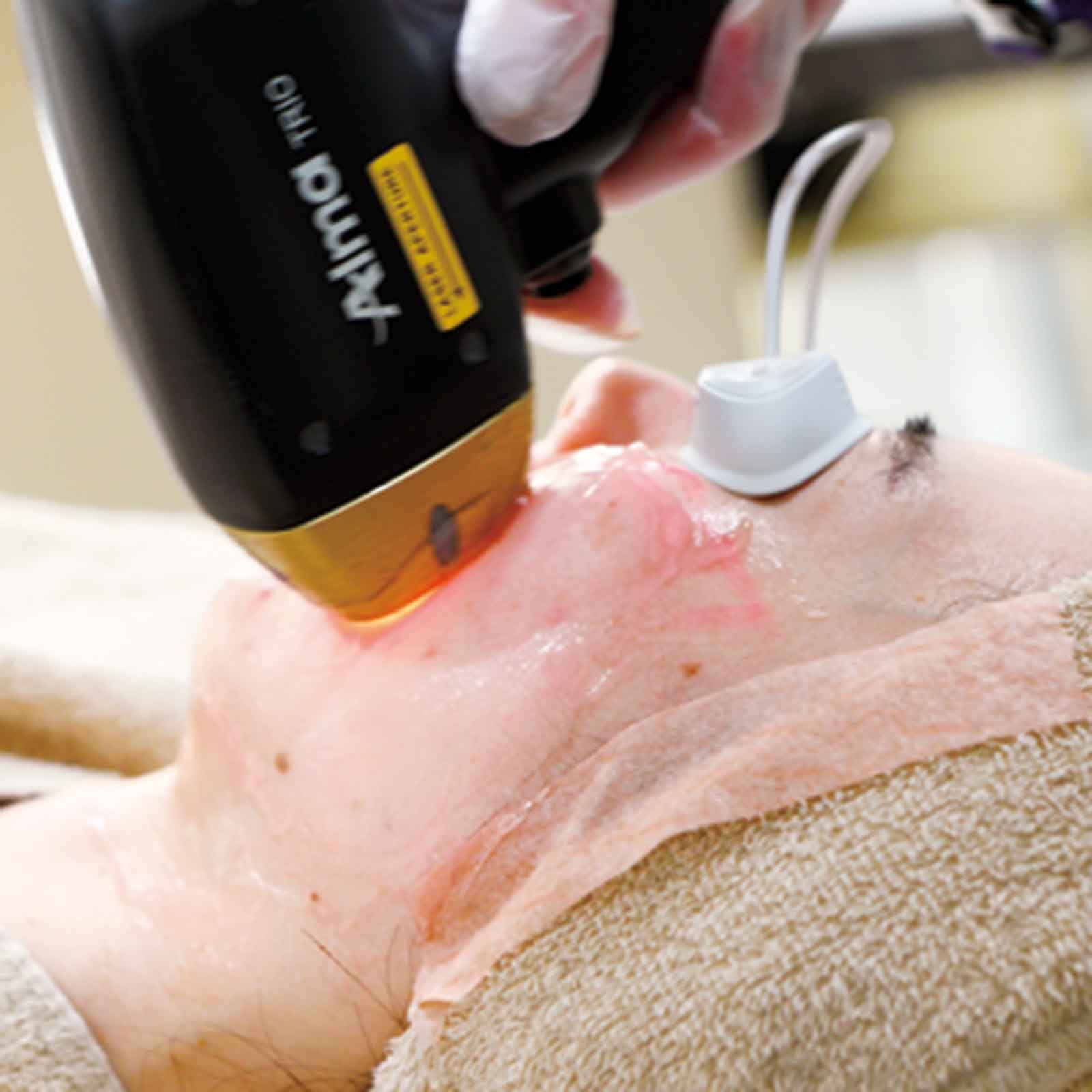 755nm、810nm、1064nmを同時に照射し異なる層にアプローチ。美白やリフトアップなどが叶うオールインワンレーザー。