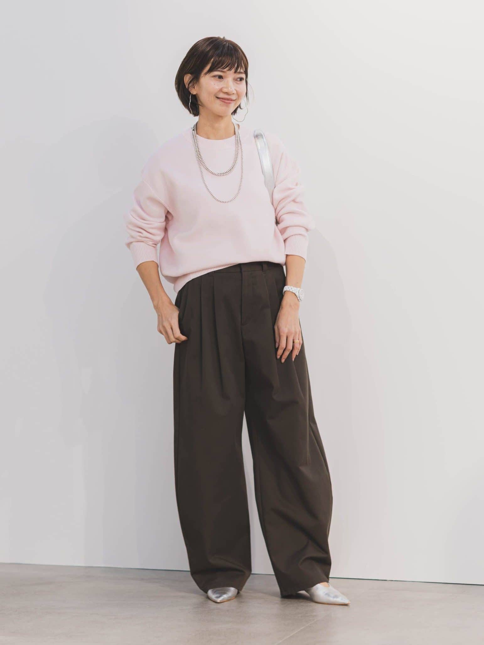 ユニクロ名品の代表格、カシミヤニットはサイズ選びで表情が変わるのが魅力。メンズサイズを選べば、ゆるさと抜け感が加わり一気に大人仕様に。軽くて暖かい極上の肌触りで、エフォートレスに洗練を叶えてくれます。