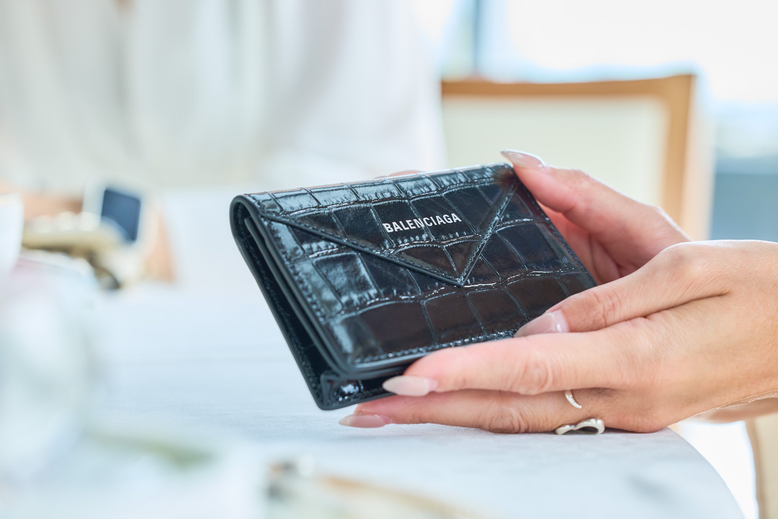 バッグが小さい日は迷わずコンパクトなお財布に。色もブラックでまとめてコーデ全体を引き締めます。お金やカードをさっと取り出せるから、お会計もスマートに。さりげない小物使いで大人のおしゃれを楽しんでいます。気合を入れすぎてないのにおしゃれ感を出せるので、女子会にはバレンシアガを持っていきます。