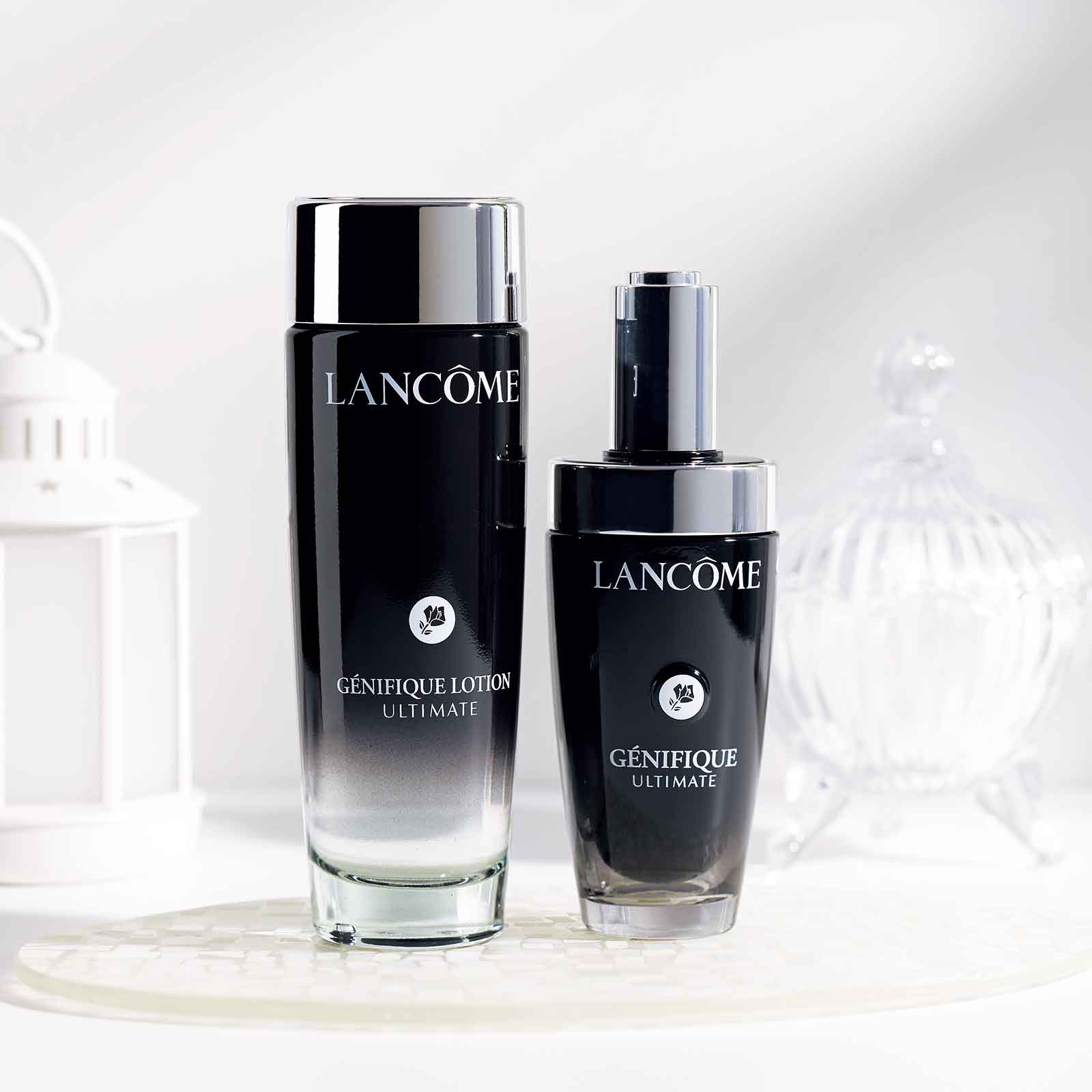 次世代成分「βグルカン」配合。回復力に特化。左:じっくりと肌表面にとどまり、一日中潤いが続く。同 エッセンス ローション 150ml ¥9,900、右:7種のプレ/プロバイオティクス由来成分がバリア機能をサポート。早く深く浸透する瞬間浸透テクスチャー。ジェニフィック アルティメ セラム 50ml ¥18,700(ともにランコム