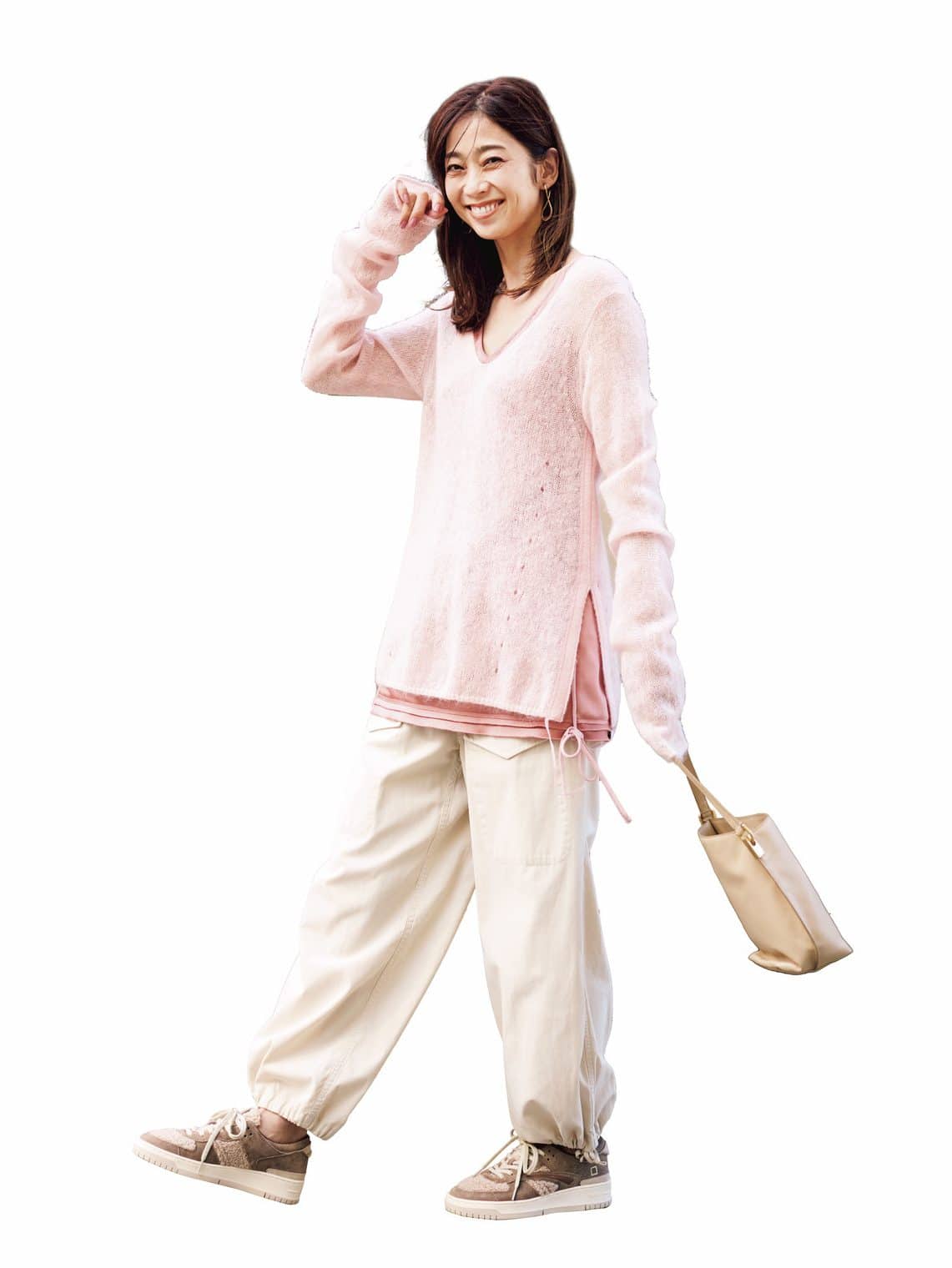 ニット¥19,800キャミソール¥25,300(ともにstyling/)パンツ¥26,400(ティッカ)バッグ¥37,{hlb}400(オルセット/オルサ)スニーカー¥35,200(デイト/ティースクエア プレスルーム)イヤリング¥46,200(ブランイリス/ブランイリス トーキョー)チョーカー¥7,480(ピルグリム/ズットホリック)