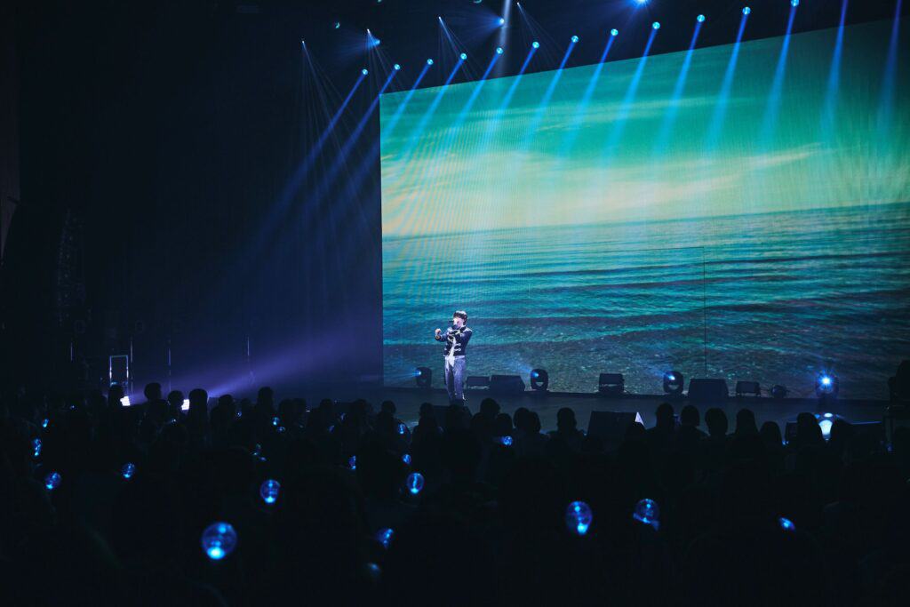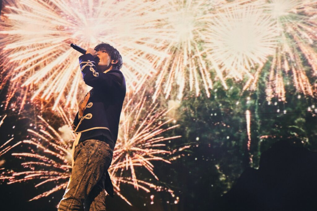 「Just Say It」は夏の風みたいに爽やか。そのまま「Fire works」につながると、スクリーンに花火が上がり、会場は真夏の夜のような空気に包まれました。青いペンライトが一面に広がり、夜空を見上げているみたいな景色です。