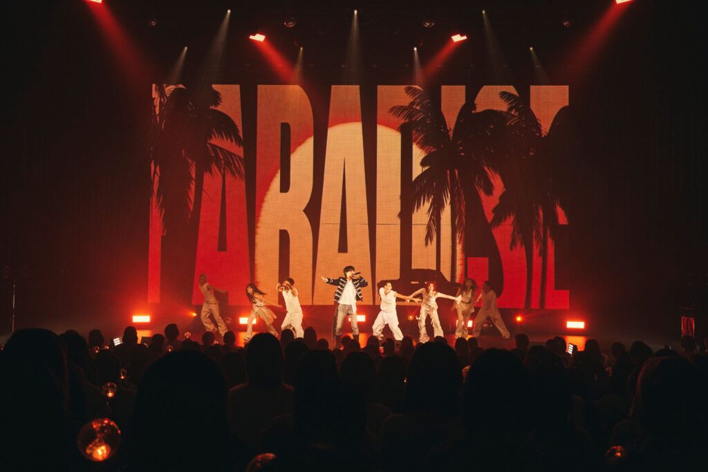 続いて始まった「Paradise」のダンスレクチャー。一緒に振りを確認する時間は、ライブというより友達みたいな距離感。「大丈夫?」「もう一回やりますか!」そんなやさしい声に、会場から笑いがこぼれます。気づけば会場にいる全員が同じ動きをしていました。