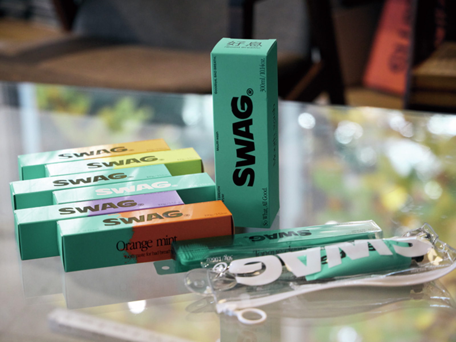 コロナ禍のマスク生活で、口臭が気になったのが、SWAG誕生のきっかけ。強烈なミント感を求めて、あえて韓国の工場で製造。製品作り はデザイン性も重視しています。