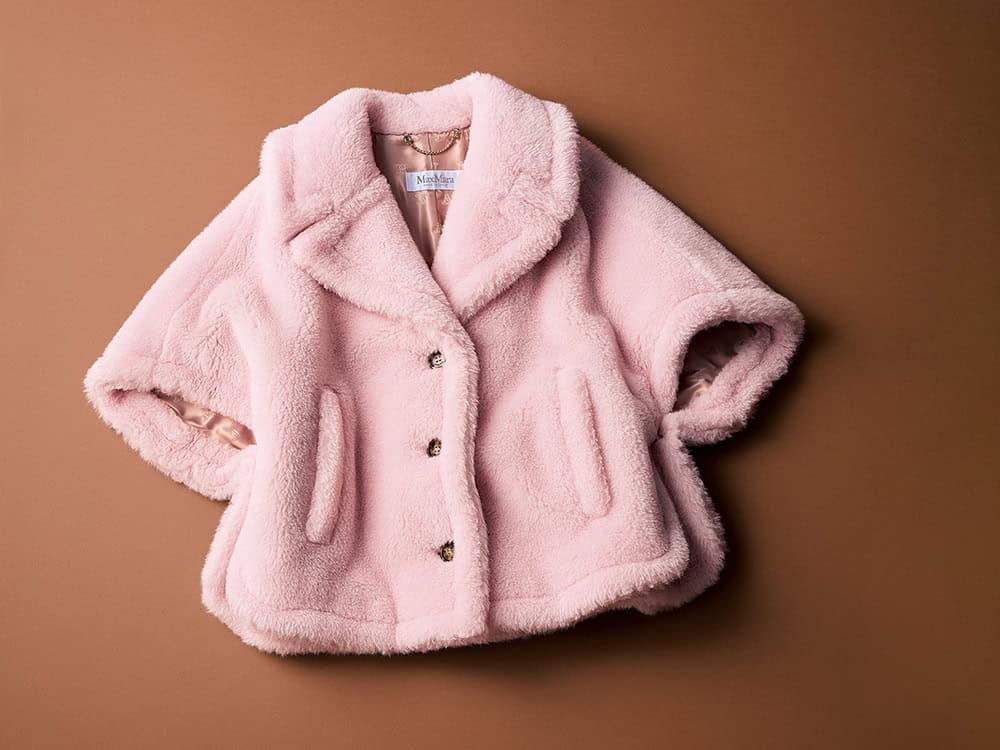 ムートン調ですが、アルパカ入りの軽く暖かなボア素材。サイドのボタンを外すとポンチョ風に着られます。(マックスマーラ/マックスマーラ ジャパン)