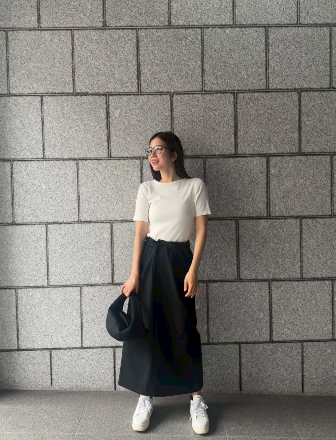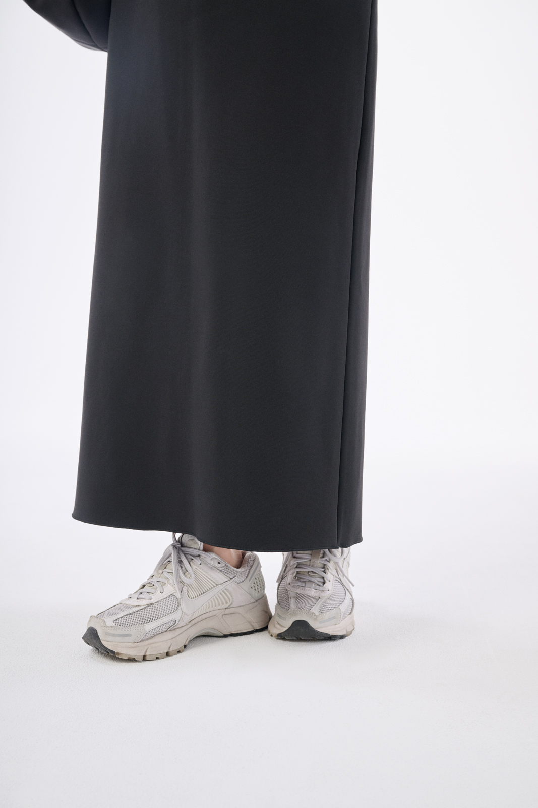平日はほぼ毎日スニーカーです。通勤では体を動かす目的も兼ねて往復1時間ほど歩くため、ヒール靴は自然と出番が減りました。ナイキやニューバランスなど、歩きやすく細身シルエットのものを選ぶことが多く、ほっこりしすぎずバランスがとりやすいので、どんなコーデにも合わせやすいのが魅力です。きちんと感はキープしたいので手持ちは白スニーカーが中心ですが、韓国旅行中に靴が壊れて急遽購入したこのグレーのナイキも大活躍中。オン・オフ問わず頼れる一足です。