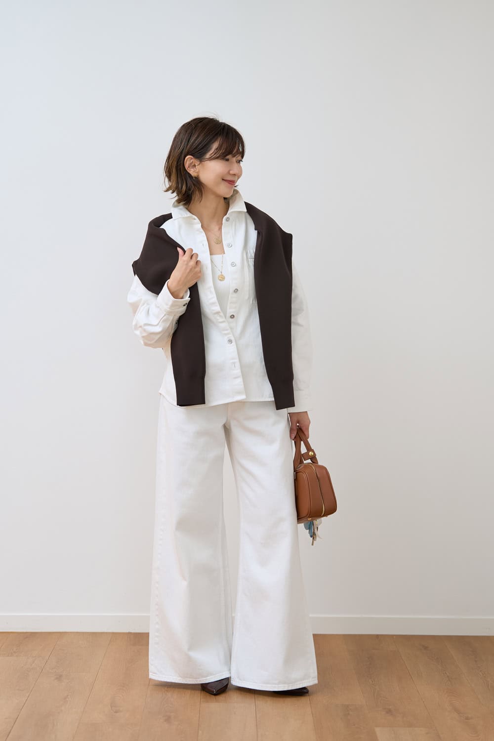 「ホワイトジーンズ」のセットアップで綺麗めスタイルに