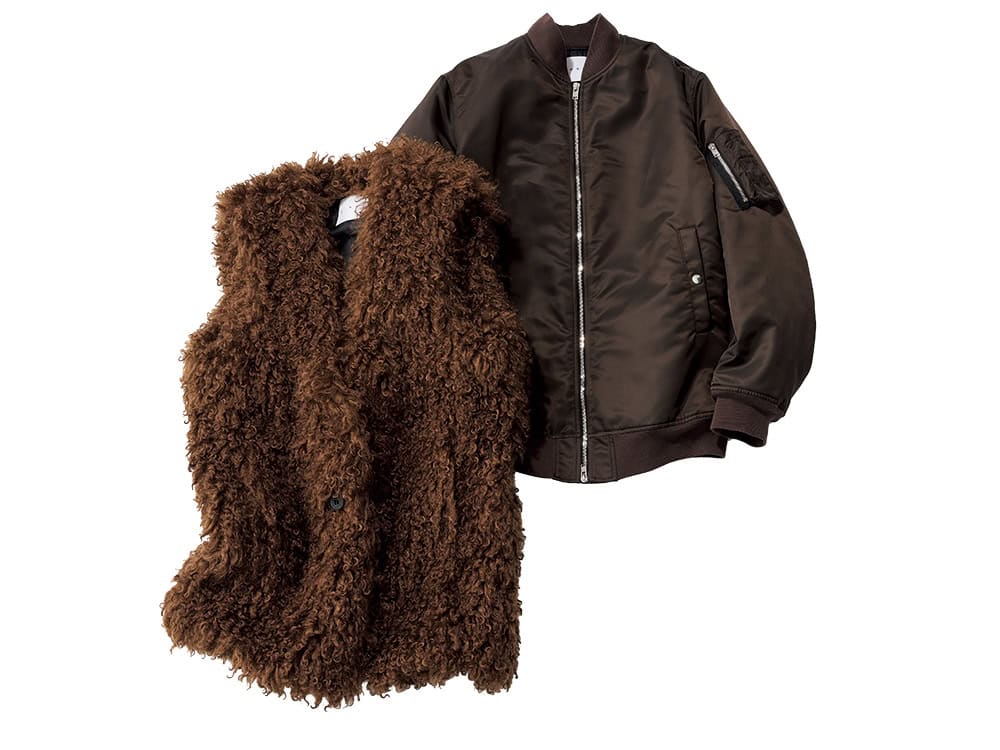 ブルゾンにボアジレを重ね着する今どきバランスが◎。