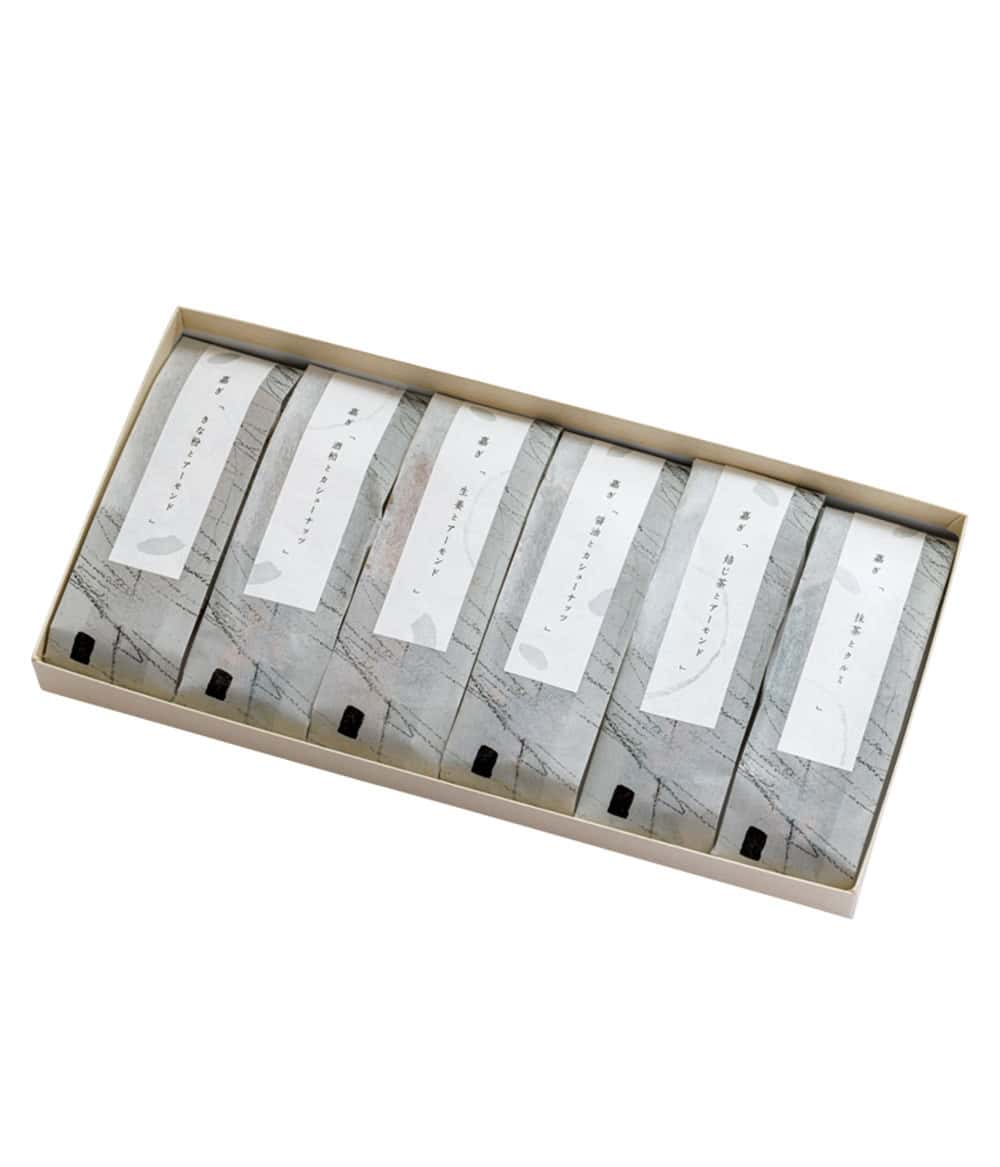 この冬一番活躍しているレザーパンツ。気心の知れた取引先といえども、少しキレイめを意識してネイビーのニットを合わせます。訪問には、かはんのお菓子を。個包装かつ、オシャレなフロランタンを詰め合わせで。中之島にある「かはん」はモダンな店構えも◎。