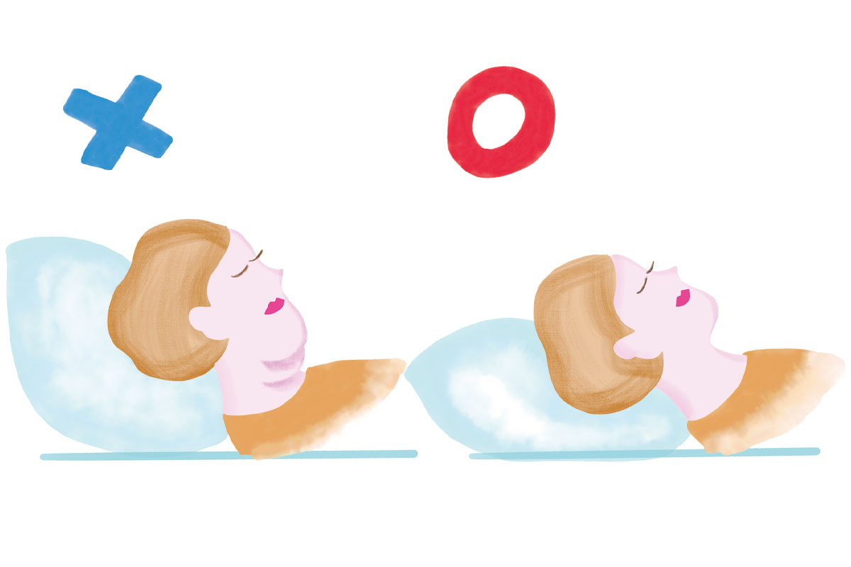 高い枕は顎を引いた状態になりやすく、首のシワや二重顎につながりますが、低すぎると頭が沈み血流やリンパの流れが悪くなりむくみやたるみの原因に。枕は仰向けで寝た時に首の自然なカーブが保たれ、顎が引かれすぎない高さのものをセレクトしましょう。